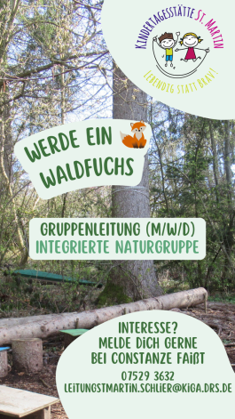 Seit 2013 wird unsere Einrichtung durch eine integrierte Waldgruppe bereichert. Durch die günstige Lage der Einrichtung erreichet die Waldgruppe täglich ihr Waldstück mit Bauwagen.